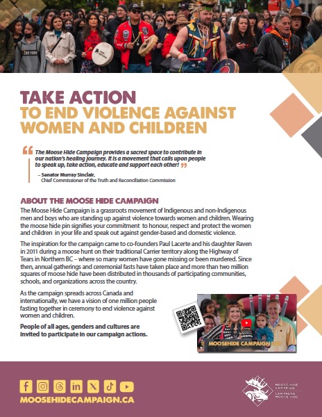 We have prepared a PDF that you can print out for kiosks and events to help share the message about the 2025 Moose Hide Campaign Day.