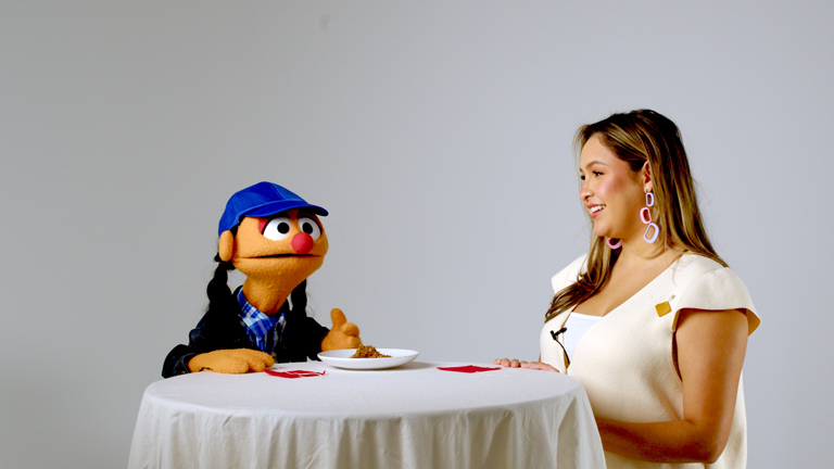 Raven Lacerte make friendship bracelets for Moose Hide Campaign Day with Cottonball from CBC Kids.